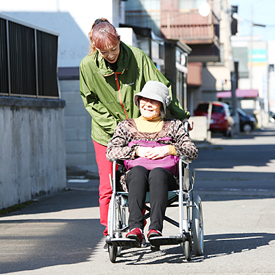 ホームヘルパーが家庭を訪問して、入浴、排せつ食事などの介助や、調理、掃除、洗濯などの生活面の支援を行います。